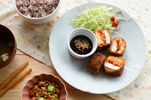 通常のひき肉、玉ねぎなどハンバーグの材料にちぎったはんぺんを加えて作る。普段のハンバーグよりふわふわの食感に仕上がり、食べごたえも十分だが肉だけで作るより低カロリーなのでダイエットに適している。 - 焼きはんぺん