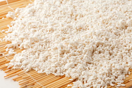 酒粕は日本酒の製造工程でできる副産物である。米麹は、蒸した米に麹菌を振り掛けて増やしたものだ。どちらも甘酒の原料となる。酒粕にはアルコールが含まれるため、利用するときには注意しよう。