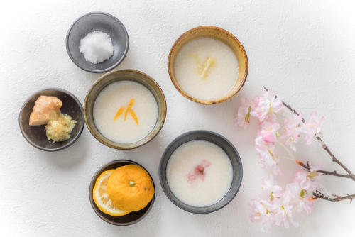 酒粕100gを水500mlに浸けて1時間以上置く。鍋に酒粕を入れて温め、砂糖、塩、ショウガをお好みの量入れたら完成だ。酒粕には