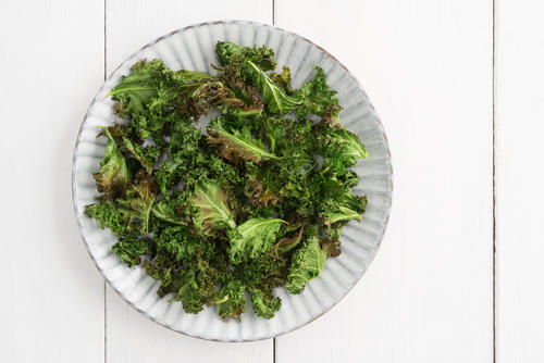 ケールをよく洗い、葉の部分だけを1口大にちぎって水気を拭く→塩、オリーブオイルをかけよく混ぜ、ケールの葉全体に下味をつける→あらかじめ低温で温めたオーブンの天板にオーブンシートを敷く→その上にケールが重ならないよう広げる→オーブンで10分ほど焼く→葉が完全に乾き、やや茶色になるまでカリカリに焼けたら完成。