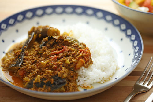 ナスの田楽など、ナス×味噌の組み合わせのレシピは多いので、ナスも味噌とよく合う食材のひとつといえるだろう。火を通してとろとろに煮込んだナスが、味噌を入れたカレーとマッチするはずだ。