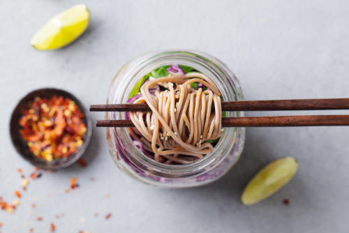 ガラスの器や皿は、涼しげな雰囲気を演出してくれるので、夏の冷たい蕎麦を盛り付けるのには最適。1口ずつに盛り付けるのなら、豆皿や蕎麦猪口を利用してもいいだろう。近頃では、ジャーと呼ばれるガラス瓶の保存容器に、蕎麦をつけ汁とともに入れる、なんていういかにも映える盛り付け方法も。