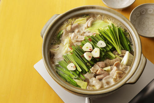 博多風のもつ鍋を作る場合は、豚骨スープをベースに、九州麦味噌で味付けをする。具材には、もつのほかにキャベツやニラなどの野菜をたっぷり入れる。隠し味にニンニクも加えてもよい。味噌の甘みともつの旨みがよく合う1品だ。