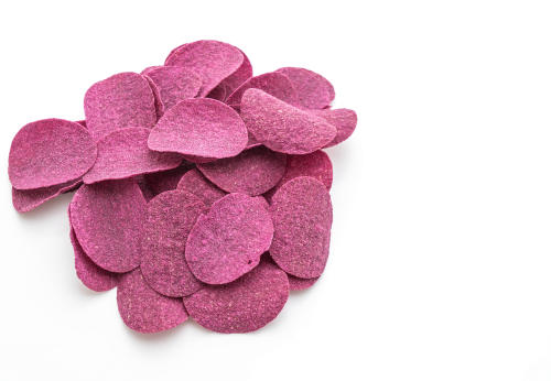 カラフルポテト専用に作られたレシピは、色落ち防止のコツが組み込まれていることが多い。手順はきちんと守ろう。シャドークイーンを包丁で切った断面は、誰かに自慢したくなるほど美しい。この色を活かして発泡酒やポテトスナックになっているので、見かけたら要チェックである。