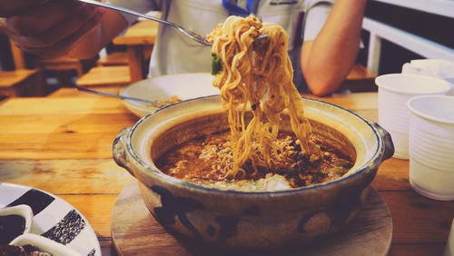 乾燥タイプのラーメンを入れるのは、韓国や台湾の鍋料理では定番だ。日本では麺だけで売っていることが少ないため、インスタントラーメンの麺だけを使う。使わないスープは予め鍋つゆに入れても良いし、保存しておいて炒飯や炒め物に使ってもいい。