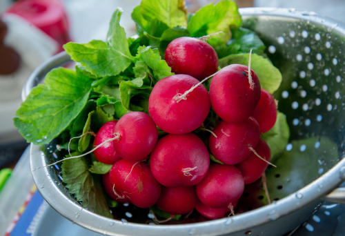 今回カットする野菜はラディッシュ、あの赤い野菜を使用して行う。カブのような形をしているが、日本語ではハツカダイコンというとおり、大根の仲間だ。