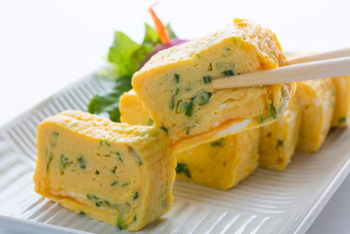 玉子焼きは、鶏卵に砂糖、塩、醤油などで味をつけ、薄く焼きながら巻いたものだ。お弁当に欠かすことのできない料理としても知られている。