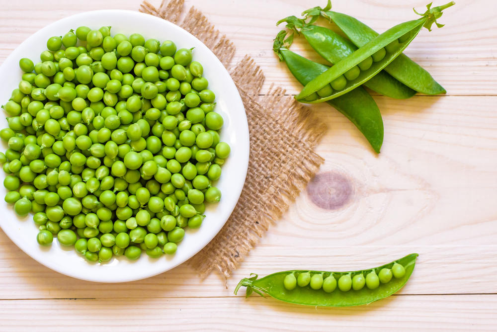 露地栽培がメインのえんどう豆。サヤ付きのものが入手できるのは、旬である春から初夏限定だ。さやごと食せるさやえんどうとは異なり、さやの中の青い豆だけを取り出して食べる。