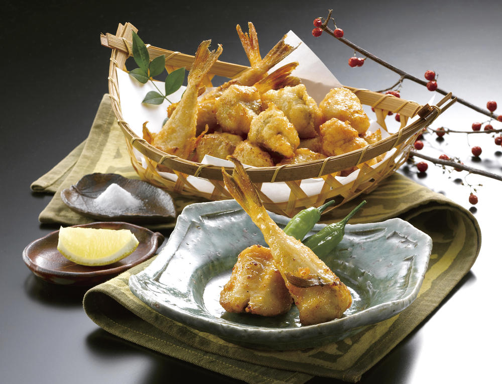 あらかじめ生姜やニンニク、醤油などで下味をつけてから、粉をまぶして揚げてもよいだろう。レモンや塩などを添えれば、粉に封じ込められた、ふっくらと味わい深いふぐの身を堪能できる一品に。