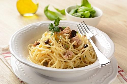 黒オリーブを使ったパスタといえば、ツナを使った冷製パスタが定番だ。水分を切ったツナと黒オリーブのスライスを合わせ、茹でて冷やしたスパゲッティを和える。そこに、レモン汁、オリーブ油、塩・こしょう、はちみつ、あればワインビネガーを混ぜればできあがり。シンプルだが、黒オリーブの実がアクセントになり、食べやすいさわやかなパスタになる。