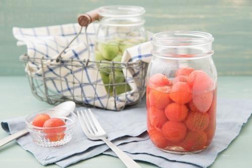 保存容器に湯むきしたミニトマトを入れ、上から酢液を注ぎ入れて冷蔵庫で冷やすと、2~3時間で味が染みる。1口大で、湯剥きしてあるので皮が口の中に残らず食べやすい。よく冷やすと、猛暑で食欲が湧かない時でも、いくつでも食べられるはずだ。