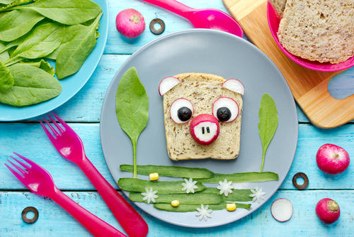 ラディッシュをてんとう虫に見立てたり、きのこに見立てたりしてもおもしろい。ラディッシュの赤と白を利用すれば、意外にもさまざまなモチーフが仕上がるのだ。子どもが好きそうなキャラクターや動物を作ると、大喜びで食べてくれるだろう。