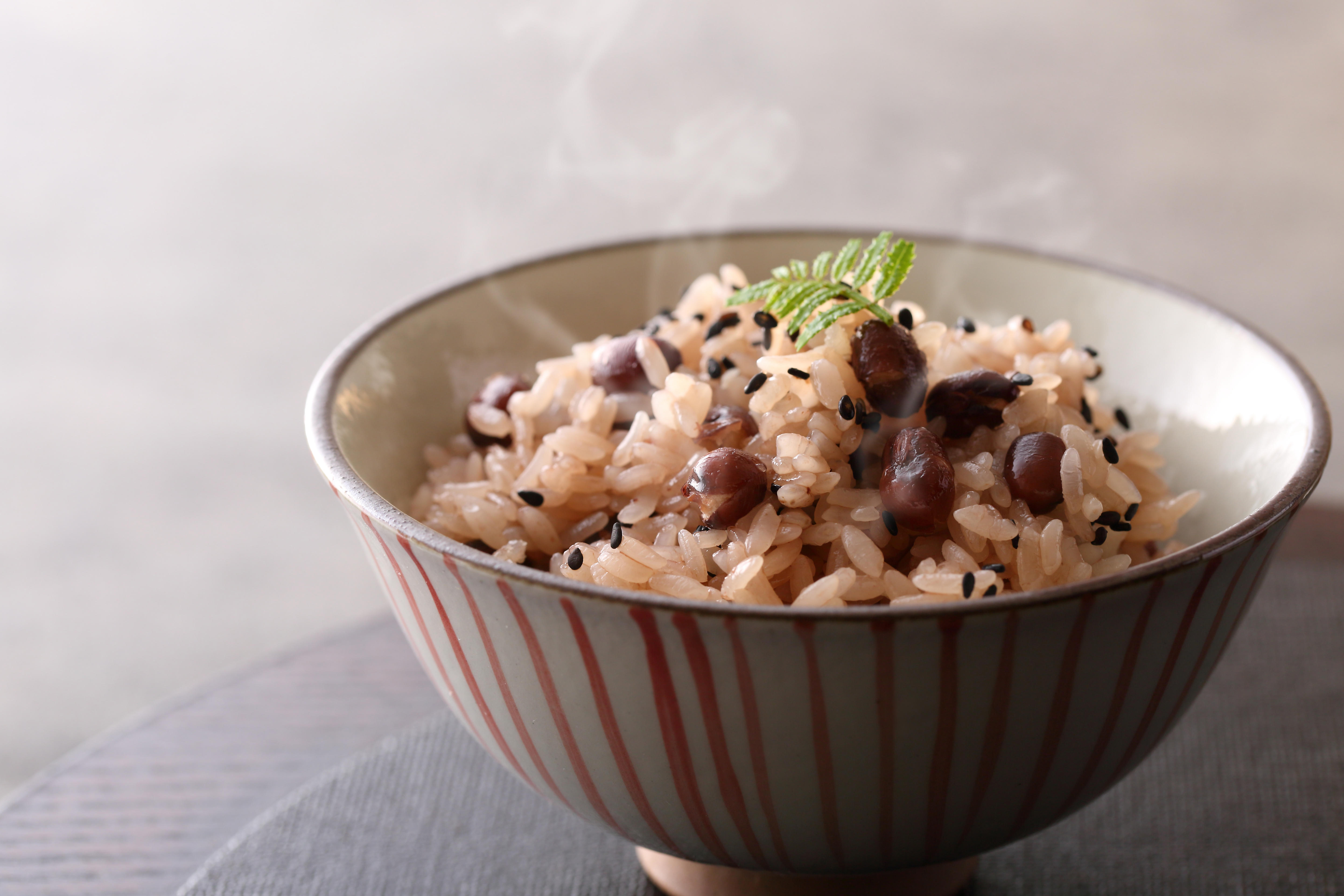 災いを避けるという意味で食べられていた赤飯。小豆ともち米があったら作ることができ、蒸し加減も最後の仕上げの時に調整できる。おめでたい日に作ってみよう。「難を転じる」という縁起をかついで、南天を添える風習もぜひ取り入れたい。