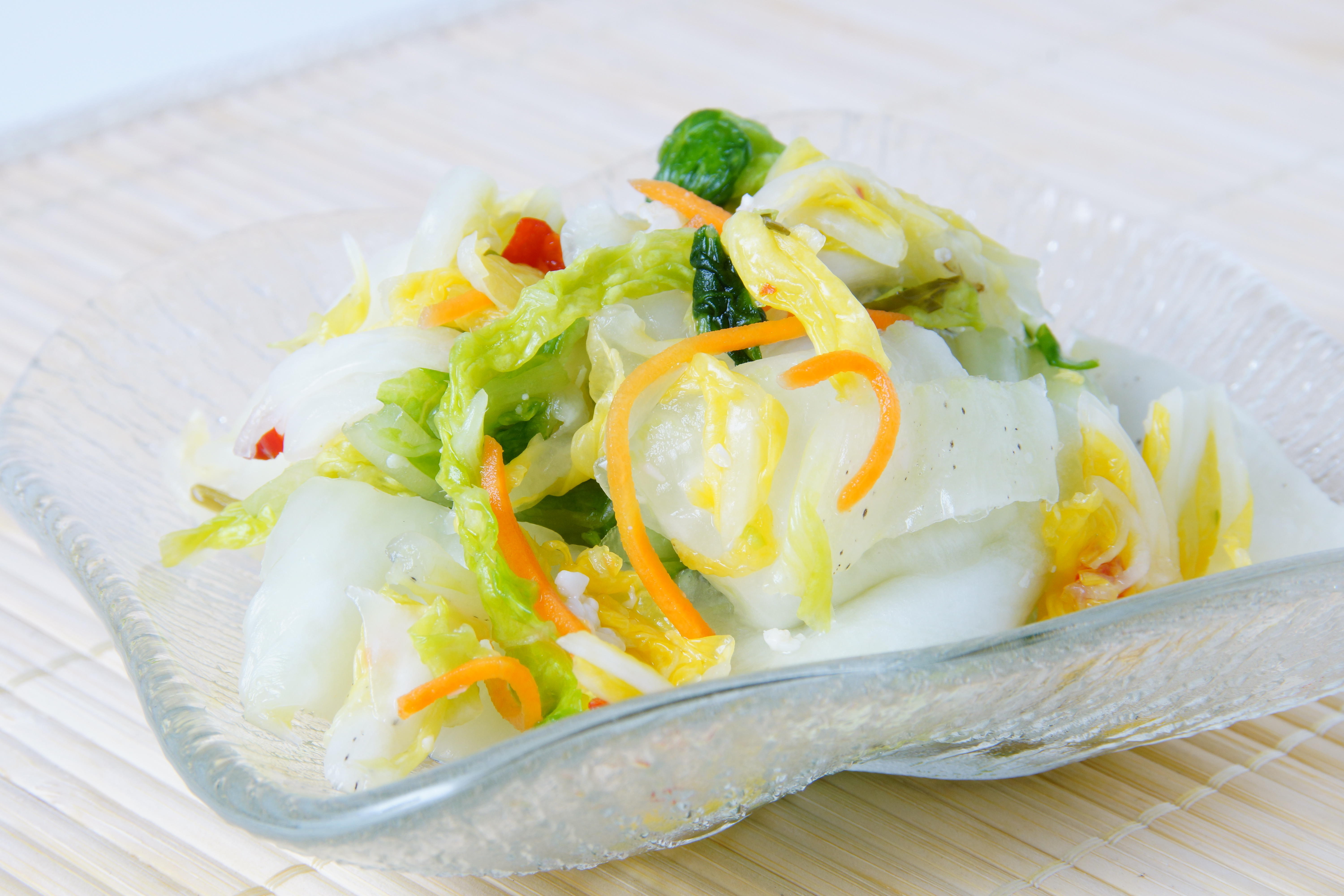 中国には昔から養生三宝と呼ばれている食材がある。白菜と大根、豆腐のことで、白菜はビタミンCが豊富なので、風邪予防や免疫力のアップに役立つ。また、薬膳では甘みがあり体の熱を取る食材だとされていて、熱による不快な症状の緩和や咳を和らげる作用がある。ただし、熱を下げる効果が期待できる涼性の食品なので、冬に旨みが増す野菜ではあっても冷え性の方は食べ過ぎに注意したほうがよい。
