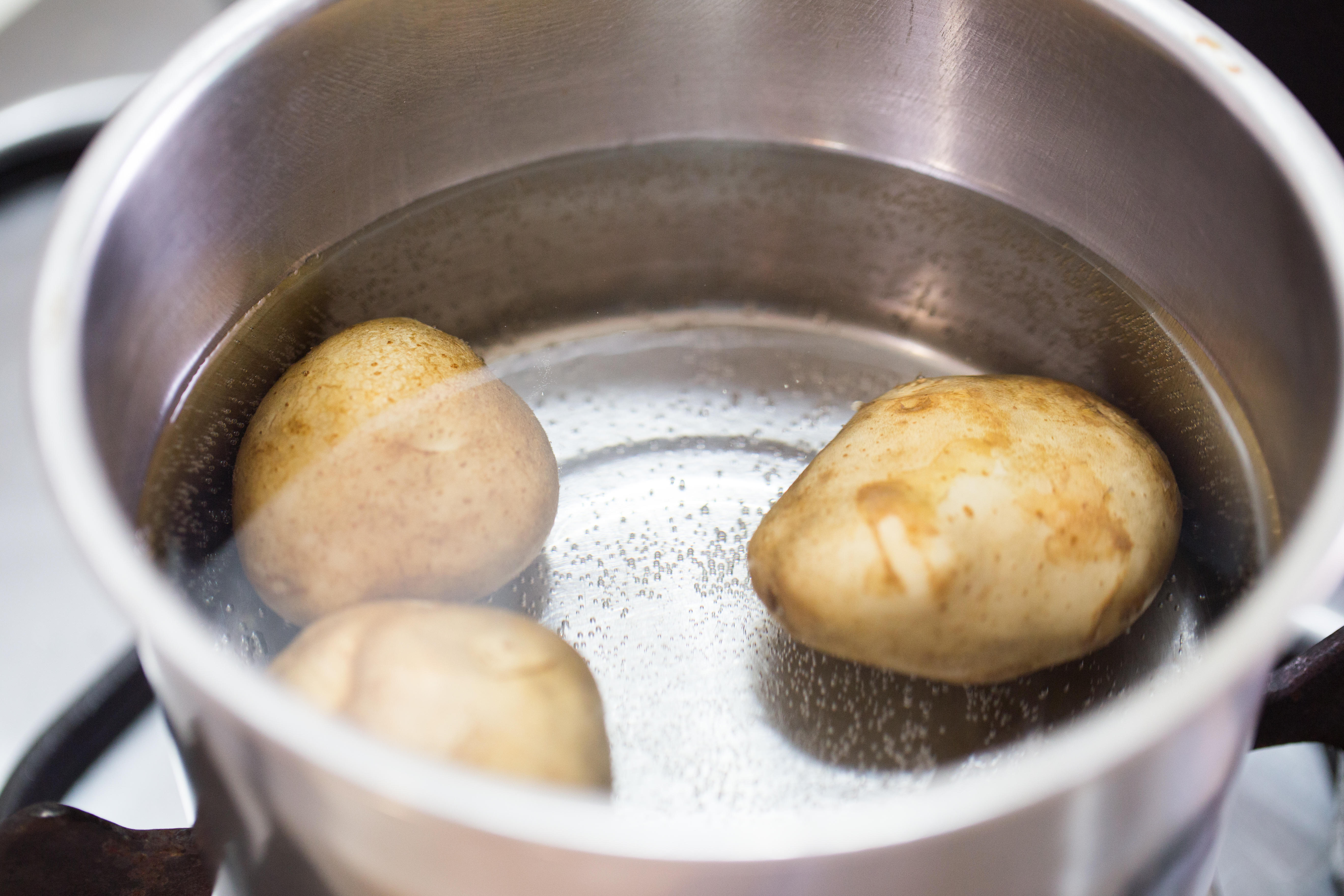 じゃがいもはでんぷんが入った袋のようなものが集まってできている。その袋と袋をつなぐのがペクチンなのだが、じゃがいもをゆでて加熱するとペクチンの働きが弱まる。そして、ペクチンが接着剤のような役割を果たしているので、でんぷんがばらばらになって煮崩れ、ホクホクした食感になるのである。