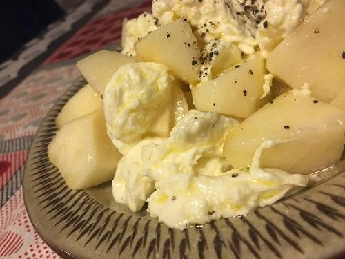 このサラダは、イチジクやイチゴ、ラ・フランス、柿など、様々なフルーツで楽しむことができる。フルーツをお好みの大きさに切り、塩コショウと白ワインビネガーで味付ける。イチゴやイチジクなら、バルサミコ酢もおすすめ。あとは、ブッラータかモッツァレラチーズをちぎって和え、最後にオリーブオイルをかけるだけ。簡単で見た目も華やか。ワインにもぴったりなので、おもてなしに持ってこい。