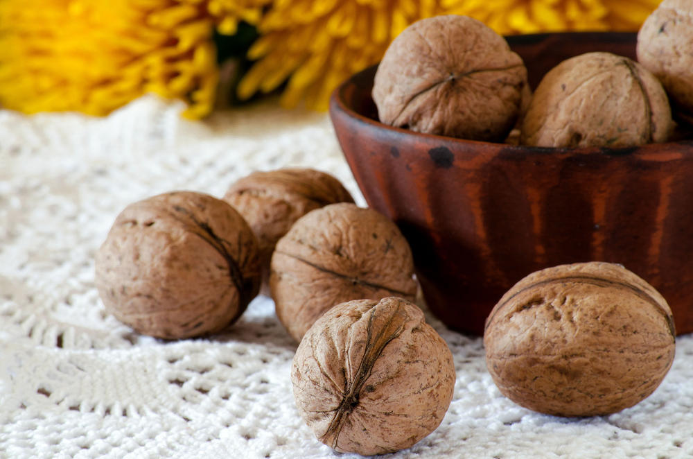 薄皮を剥いたくるみを、すり鉢で擂る。ねっとりしてきたら、砂糖、酒、薄口醤油、塩を加えて混ぜる。茹で冷まし絞った菊を入れ、和えれば出来上がり。