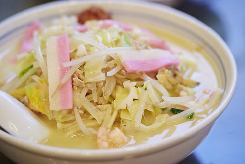 まずは、「長崎ちゃんぽん」。遣唐使や遣隋使の時代から大陸との交易が盛んだった長崎県。この地の郷土料理であるちゃんぽんは、濃厚なスープに魚介や野菜などたくさんの具材、そして「ちゃんぽん玉」と呼ばれる独特の太めの麺が使われる麺料理だ。この麺の製造に用いられるのが、固形のかんすい「唐灰汁」。昭和初期に上海から伝わり、長崎の製麺所ではこの灰汁を使って、独特の風味がある麺が作られている。