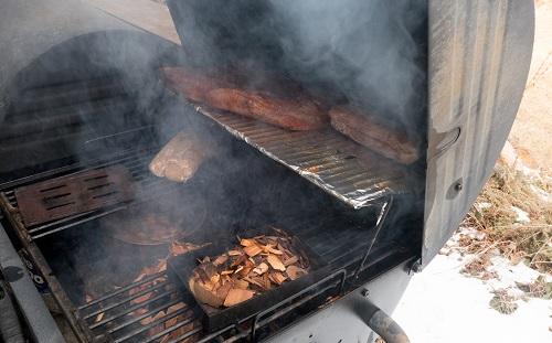 また、厚手の鍋に足付きの網を入れての即席燻製器でも十分美味しくできる。まずは強火で肉がこんがりよい色になったら、弱火でじわじわスモークしよう。