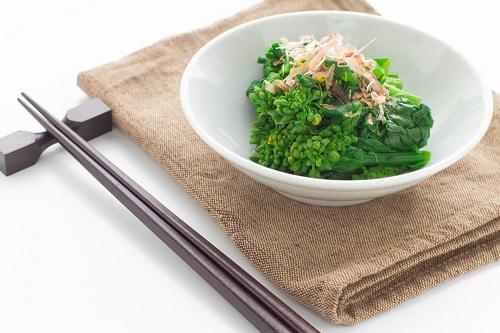 菜の花を茹でたら、お浸しやからし和えなどに。また、炒めものやパスタなど油をプラスする調理法だと、β-カロテンの吸収率もアップする。