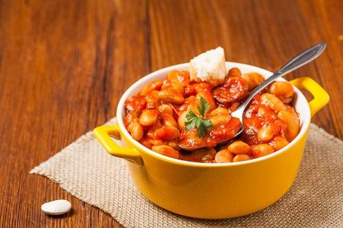 和菓子のイメージが強いいんげん豆だが、おかずに利用することもできる。まずはポークビーンズ。普通は大豆の水煮で作るが、ちょっと大きめのいんげん豆を使っても美味しくできる。最近は、いんげん豆やひよこ豆が入っている、豆のドライパック缶が出回っているので、手軽に豆を使うことができる。乾燥豆を戻す手間がかからないので便利だ。