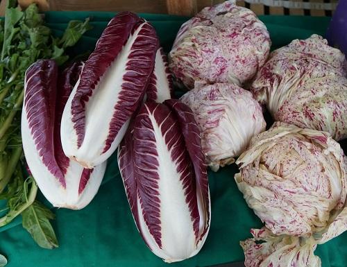 丸く結球する葉野菜。新芽を食すチコリとは異なり、大きくなった葉を食べる。紫キャベツのような色落ちはない。別名、ラディッキオ・ロッソ、キオッジャ。