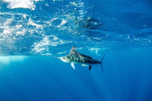 体が紡錘形で、三日月のような尾ビレと発達した筋肉を持つカジキは、水中における最速の魚にして獰猛な肉食ハンター。種類によっては最高時速100kmにまで達するといわれ、欧米で盛んなスポーツフィッシングは、カジキの遊泳力と競うように船を走らせる豪快なものだ。