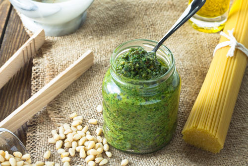 バジルの高い風味とパンチの効いたニンニクがポイント。松の実とチーズを加えることでコクが生まれ、ほかにはない味わいに。さわやかなのに、濃厚という印象。パスタソースとして人気が高いが、実は、肉や魚、野菜との相性も抜群。和え物や、肉や魚のソースとしても活躍してくれる。
