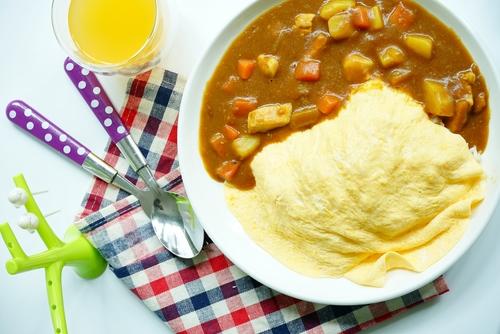 ・カレーをかけて、オムレツカレー