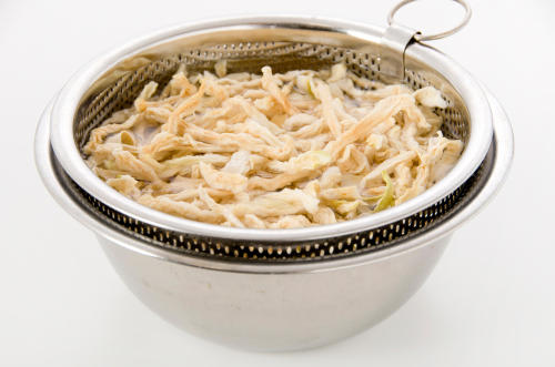 乾物を扱うときに聞く言葉で「戻し率」というものがある。それが何なのか、よくわかっていない人も多いだろう。戻し率とは、水で戻す前と後の量の違いのことだ。例えば、一般家庭でも馴染み深い「切り干し大根」は、戻し率が4倍である。これは、10グラムの切り干し大根を水で戻すと40グラムになることを指している。カットわかめであれば、戻し率は12倍。10グラムを水で戻すと120グラムになる。