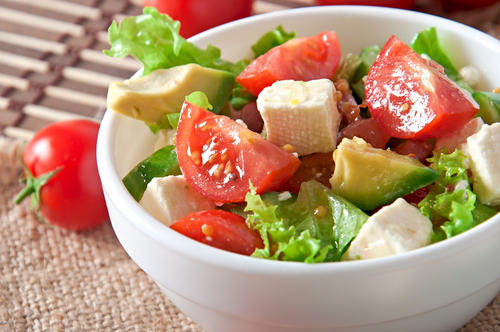 オシャレな副菜を用意したいなら、トマト・モッツァレラチーズ・アボカドを使ったカプレーゼを作ってみよう。全部半月切りにして順番に並べる。それからバジルソースをかけるだけで完成だ。ステーキに足りないビタミン類・ミネラル類・食物繊維などをバランスよく補うことができる。
