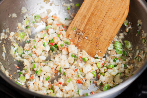 クリームコロッケを作る手順は、できたクリームに具材を混ぜるのではなく、具材を加熱してからそこにクリームの材料を入れて和えながらホワイトソースを作るのが正しい。ソースを作ってから具材を加えるよりも、先に具材を作ってからのほうがソースの量を調整しやすく無駄がない。