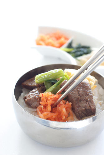 韓国の定番料理として人気の高いナムル。焼肉専門店でもよく見る付け合せで、肉との相性はバツグンだ。ナムルは塩とごま油、材料となる野菜を混ぜて作る。ほうれん草やもやし、ニンジンなどが一般的なナムルの材料。焼肉の付け合せに選べば、弁当の彩りと栄養バランスがよくなるだろう。肉とごはんを合わせて、ビビンバ風弁当にするのもおもしろい。