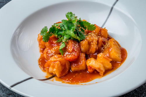 エビのふわっとした食感と、しゃきっとした長イモ。ふたつの異なる食感とチリソースが絶妙にマッチする、食べごたえのある一品。