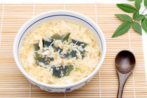 たんぱく質をはじめ、ビタミンやミネラルもバランスよく含んでいる卵を使って、フワフワな和風たまごスープを作ってみよう。作り方は、鍋に水・麺つゆ・醤油を入れて一煮立ちさせる。それから溶き卵を全体に回し入れて、数秒待ってからかき混ぜればよい。これで手軽に美味しいスープの完成だ。