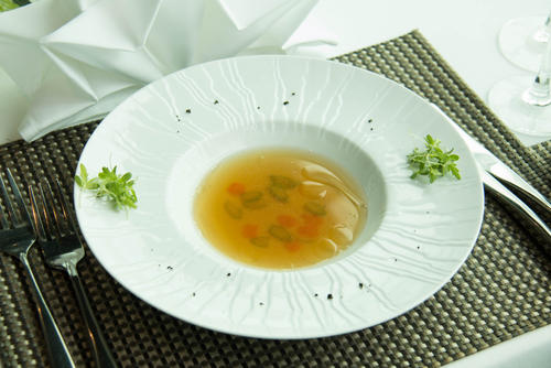美味しいコンソメを作るうえで大切なのは、いかに濁らせず、澄んだスープに仕上げられるかどうかだ。そのためにも、ベースとなるブイヨン作りはしっかりと下ごしらえをしたうえで臨みたい。