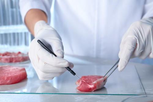 人工肉とは、人工的に作り出された肉のこと。多くは、動物の細胞を培養することで、肉のような味わいを作り出すといった方法が取られている。これまで、味わいは肉であっても見た目は白く、繊維質などの再現はできていなかったが、研究が進むなかで見た目もまるで肉のような人工肉が開発されつつある。