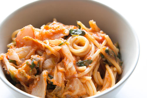 もしキムチを洋風にアレンジするのであれば、意外にもパスタやグラタンによく合うのでおすすめだ。どちらも細かく刻んだキムチを使い、キムチの素で味付けするか、コチュジャンを使う。またはトマトベースを使ってもよいだろう。隠し味として、少々マヨネーズを加えるのも好みによってはありだ。そのほかの食材としては、ツナやキノコ類、ジャガイモなどを加えるのもよい。仕上げには、粉チーズやとろけるチーズをかければ、辛味とまろやかさが絶妙に合わさってお互いの味を引き立ててくれるだろう。