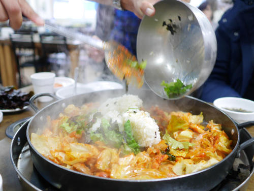 タッカルビも鍋料理であるため日本同様、韓国でも「しめ」を楽しむ文化がある。そして、ごはんはしめの定番食材として古くから愛されているのだ。日本でも本場韓国に習い、チーズタッカルビのしめにごはんを選ぶ場合が多い。