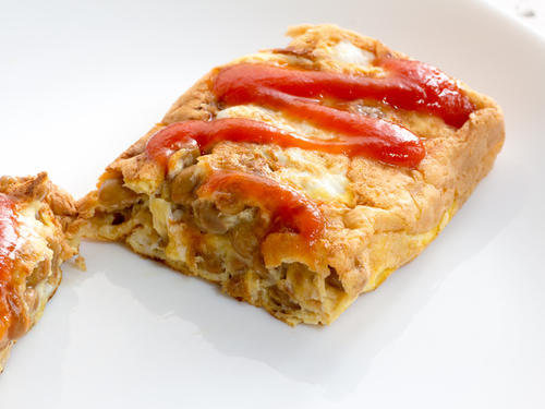 そこでおすすめしたいのが、納豆オムレツ。挽き肉の代わりに納豆を入れることで、カロリーを挽き肉を入れる場合の約半分に抑えることができる。また、納豆は糖質制限にも効果的な食材。糖質の値も、挽き肉オムレツと比較すると納豆オムレツでは約半分に抑えることができるのである。ただ、オムレツの糖質値を高めているのは、たまねぎとケチャップ。糖質をなるべく抑えたい場合には、これらの具材にとくに注意するようにしよう。