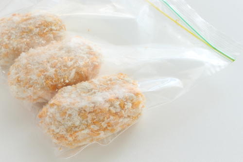 2.1の状態のコロッケをフリーザーバッグに入れてから冷凍保存する