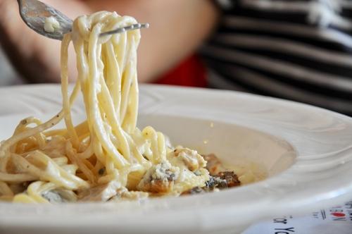 パルミジャーノチーズとペコリーノチーズの2種類を使用して、濃厚な風味を出す本場イタリア式レシピ。生クリームを使わないので、糖質制限中でもOK。チーズのコクがたまらない。