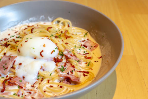 仕上がりに半熟卵などをのせた場合、黄身を冷凍してしまうと解凍後、ボソボソの食感に変化してしまう。ソースに黄身を混ぜる分には大丈夫だが、卵を上にのせたままの保存はやめたほうがベターだ。卵をのせたい場合はカルボナーラを解凍して食べるときに、新たに準備することをおすすめする。調理後にのせてしまった卵は、別の料理などに利用するといいだろう。
