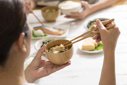 ちなみに味噌と聞くと塩分が多そう......というイメージを持つ人がいるかもしれない。味噌汁でたとえると、お椀1杯あたりの塩分量は1.2gほどだ。1日の塩分摂取量の目標は、男性が8g未満、女性が7g未満といわれている。毎食、味噌汁を1杯ずつ飲んでも塩分摂取量はトータルで約3.6gだ。あまり気にする必要はないといえるが、それでも気になる人は塩分の排出を助ける効果が期待できるワカメやこんにゃく、ゴボウなどを具にして食べることをおすすめする。