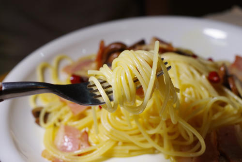 なぜならカルボナーラは麺が卵・生クリームに覆われ、具材にはベーコンが使われているため、オイルのみで具材が少ないペペロンチーノより糖質の吸収が緩やかだという。ではペペロンチーノをカロリーオフして食べるにはどうしたらいいのだろう。