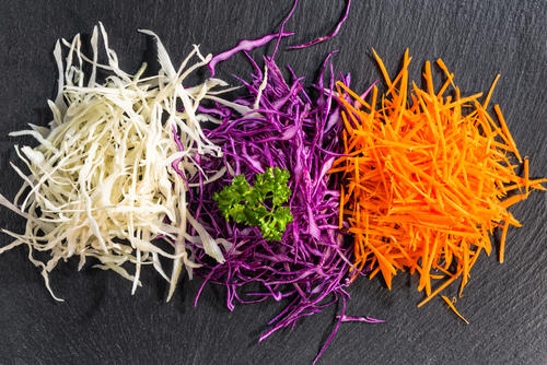 キャベツをスライサーでカットするときのコツとして、葉を手で押さえスライサーで難なくカットできるところまでをスライサーに任せ、残りはほかの料理に使ったり、包丁で丁寧にカットしたりしてみよう。キャベツの千切りをよく作るという人は、キャベツ専用の横幅の広いスライサーを使うのもよいだろう。