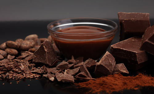 - 冷やし固まったら、ダークチョコレートを溶かして上部と側面をコーティングする。チョコレートは室温で固める。