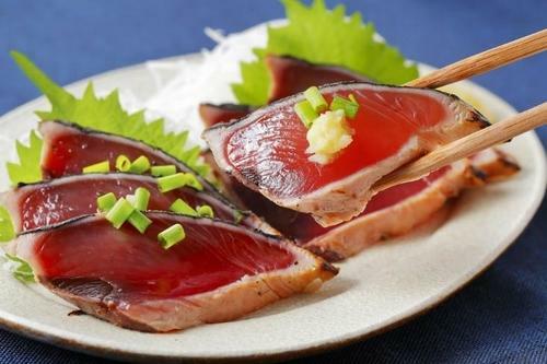 - 初鰹...春先になると孵化した鰹は太平洋沿岸を西から東へ移動する。身には脂がほとんどのっておらず、赤身の部分が多いさっぱりとした味わいを楽しめる。