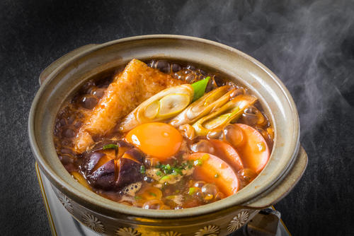 ご当地グルメがここまで人気を集める以前から、味噌煮込みうどんは広く知られる存在であった。味噌は地域によって味わいにかなり差があるが、名古屋では八丁味噌という赤みの濃い豆味噌が主流。その味噌をベースにしたうどんのことで、1人用の土鍋に入れてぐつぐつとした状態で供される。コシの強い太いうどんも特徴的で、具材にはかまぼこ、ねぎ、生卵などが用いられる。