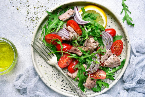 肉や魚などのタンパク質は、糖質オフにおいて欠かすことのできない存在。炭水化物を控える分、増やしたい栄養素でもある。サラダにおいてもどんどん加えたい。糖質をしっかりオフして入れれば、肉や魚はたっぷりと食べることができる。